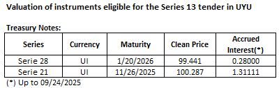 September 24th, 2025. The Republic announces the prices to be paid for the elegible securities in today's Nominal Fixed-Rate Pesos Treasury Notes auction.