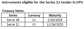 Elegible securities for Nominal Fixed-Rate Pesos Treasury Notes Series 12