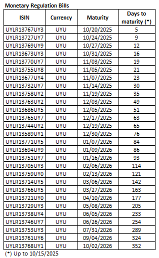 October 10th, 2025. The Republic announces the elegible securities for Tuesday's Nominal Fixed-Rate Pesos Treasury Notes auction.
