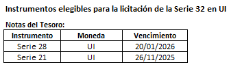 Instrumentos elegibles para la licitación de la Serie 32 en Unidades Indexadas (UI)