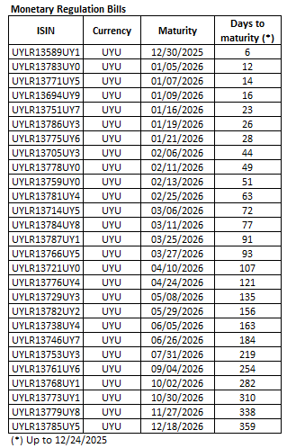 December 19th, 2025. The Republic announces the elegible securities for Tuesday's CPI-linked Treasury Notes auction.