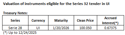 December 23th, 2025. The Republic announces the prices to be paid for the elegible securities in today´s CPI-linked Treasury Notes auction.