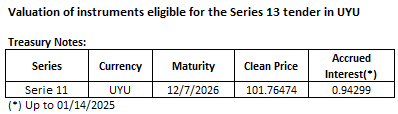January 13th, 2026. The Republic announces the prices to be paid for the elegible securities in today's Nominal Fixed-Rate Pesos Treasury Notes auction.