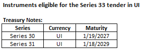 Elegible securities for CPI-linked Treasury Notes Series 33 auction