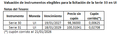 - Valuación de instrumentos elegibles para la licitación de la Serie 33 en Unidades Indexadas (UI)