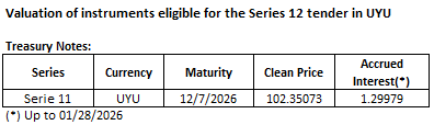 January 27th, 2026. The Republic announces the prices to be paid for the elegible securities in today's Nominal Fixed-Rate Pesos Treasury Notes auction.