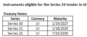 Elegible securities for CPI-linked Treasury Notes Series 29 auction