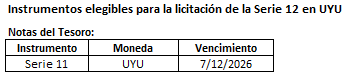 - Instrumentos elegibles para la licitación de la Serie 12 en Pesos Nominales (UYU)
