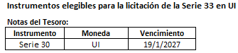 - Instrumentos elegibles para la licitación de la Serie 33 en Unidades Indexadas (UI)
