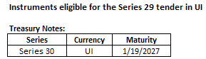 Elegible securities for CPI-linked Treasury Notes Series 29 auction