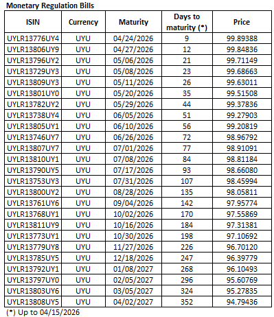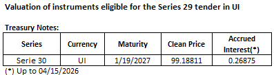 April 14th, 2026. The Republic announces the prices to be paid for the elegible securities in today´s CPI-linked Treasury Notes auction.