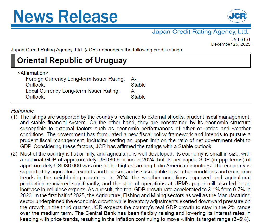 December 30th, 2025. The Government announces the domestic issuance calendar of local currency Treasury Notes for the next six months. It will continue issuing Nominal Fixed-Rate Pesos, CPI-linked and Nominal Wage-linked securities across different maturities. Also, it will continue allowing Central Bank Monetary Bills as eligible securities for tender, as detailed in the Press Release.